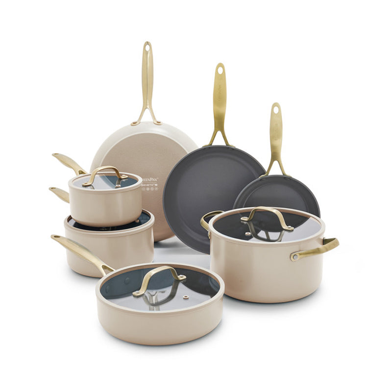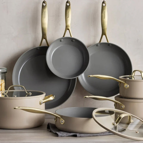 Built for versatility, the cookware is oven safe and induction compatible, giving you flexibility across all stovetops. Ergonomic stay-cool handles provide a comfortable, secure grip, while the sturdy construction ensures even heat distribution for consistent cooking results. Dishwasher safe for added convenience, this complete 11-piece set delivers the essential pots and pans you need in one stylish collection. With its beautiful Jewel design and reliable performance, GreenPan makes healthy, stress-free cooking a part of your everyday routine