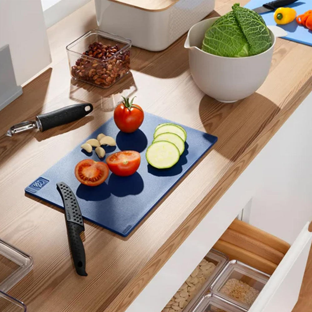 - Color & Task Coding: Each board comes in a different size and color with easy‑to‑see pictograms that suggest specific uses — typically meat/bread, vegetables, and cheese/onions — to help reduce cross‑contamination during food prep.