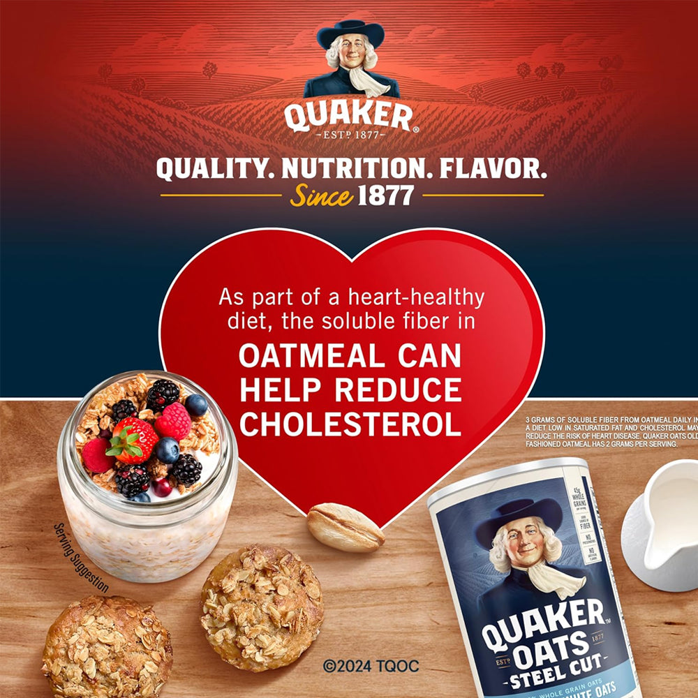 Wholesome, ready‑in‑minutes oats made from 100% whole grain oats — a simple, natural way to enjoy hearty oatmeal any time of day. These quick‑cooking oats give you all the nutritional benefits of whole grains with the convenience of fast preparation — perfect for busy mornings or when you need a nutritious snack or meal option. Rich in dietary fiber, these oats help you feel full longer and support heart health. They can be enjoyed hot as porridge or incorporated into smoothies, baking, soups and more for added nutrition and texture.
