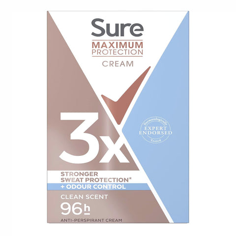 - This anti-perspirant deodorant cream is dermatologically tested and endorsed by experts.Sure Maximum Protection Clean Scent Anti-perspirant Deodorant Cream Stick allows you to always be protected for whatever happens. Sure, it won't let you down